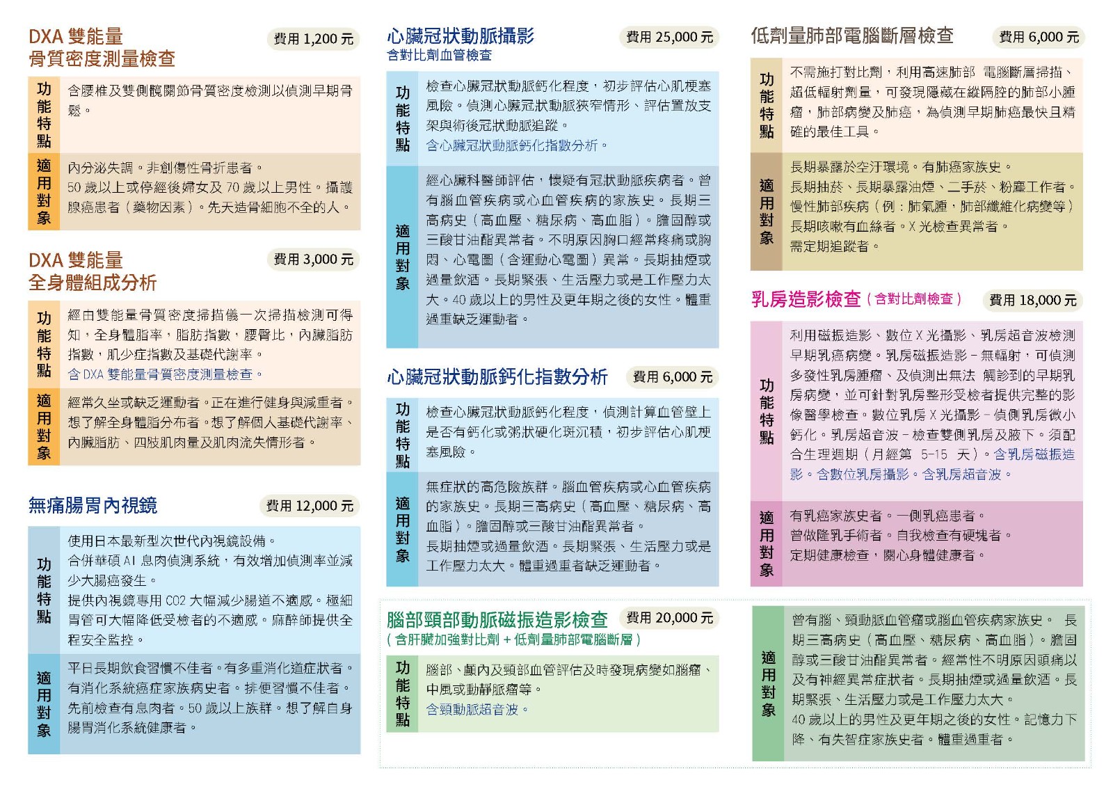 本中心推出的高階醫學影像健康檢查項目區分為: