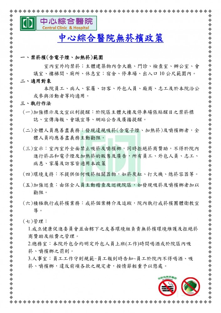 本院無菸檳政策