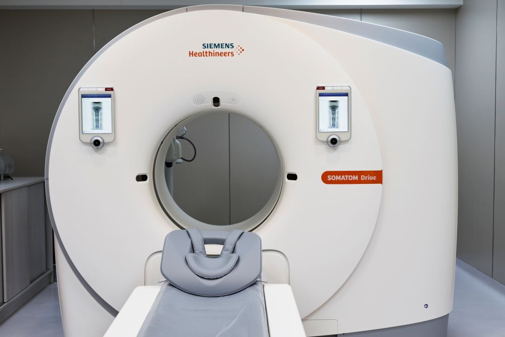 【中心綜合醫院】引進了全國最新的電腦斷層(CT)和磁振造影(MRI)設備,致力於提供高階影像檢查服務。 目前本中心高階醫學影像中心所使用之電腦斷層設備為目前衛服部核定超高切數設備SIEMENS SOMATOM Drive,768 切。所搭載配置更為新世代之技術,可提供更為優質且有保障的臨床掃描,守護民眾健康。