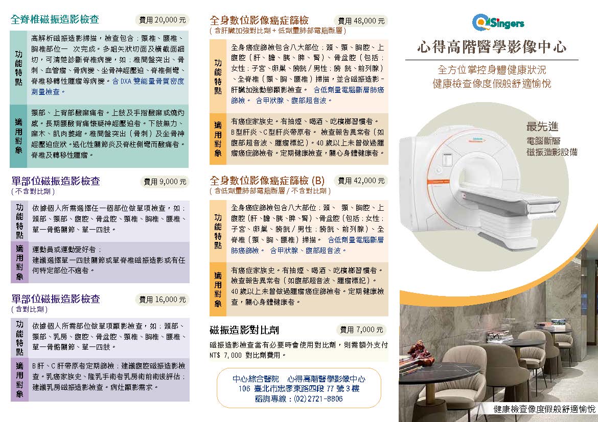 本中心推出的高階醫學影像健康檢查項目區分為:
