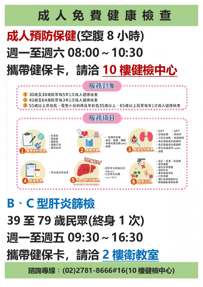 政府補助免費定期檢查,成人健檢及癌篩,健康總動員