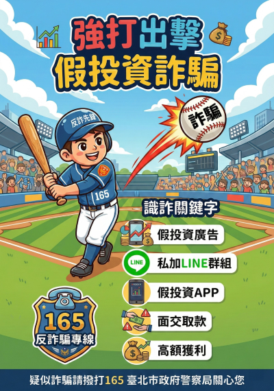 名人邀你加群組,群組暗樁真詐財!勿下載不明投資APP、配合匯款及面交金錢,守護荷包請撥打165。