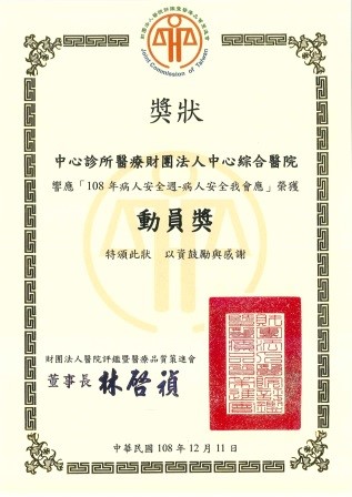賀!本院108年病人安全週-「病人安全我會應」榮獲「動員獎」