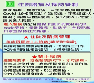[公告]111年1月起住院探訪管制新措施-(探訪時間)
